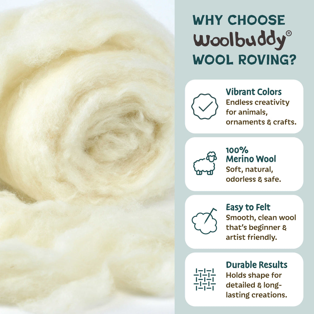 Premium Felting Wool & Wool Roving: High-quality materials for vibrant and detailed holiday crafts.
