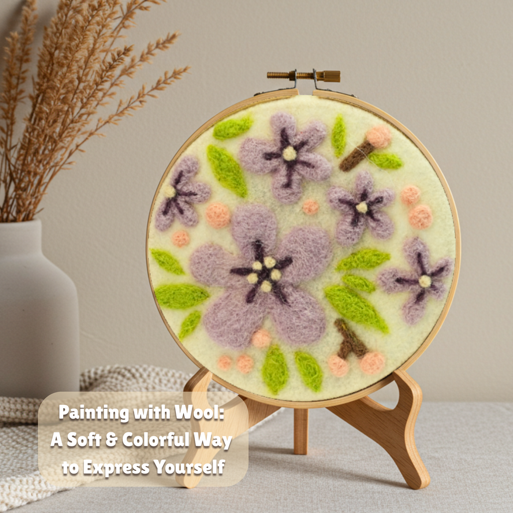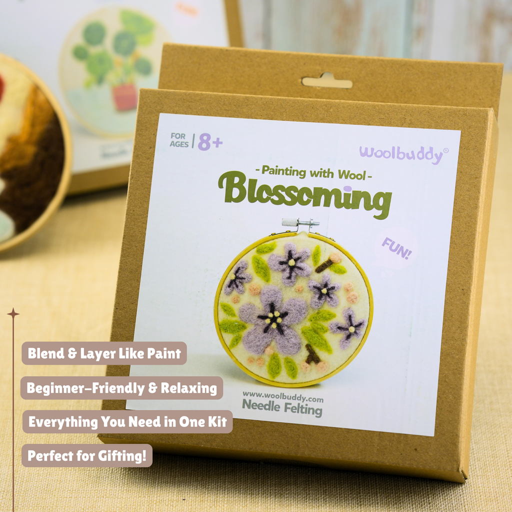 Unleash your creativity with the Painting with Wool - Blossoming (Flower) kit by Woolbuddy. This beautiful felting kit lets you create a stunning floral design using the ancient art of needle felting. Whether you're a beginner or an experienced artist, this all-in-one kit provides everything you need to bring a colorful bloom to life.